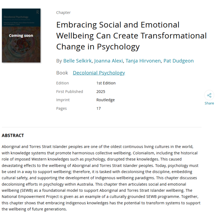 This project networks and unites experts and leaders in Indigenous psychology, heads of psychology schools, university psychology educators, as well as peak industry partners.