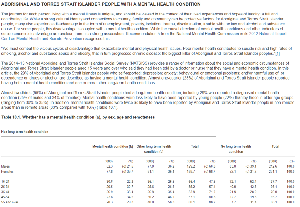 Aboriginal and Torres Strait Islander people with a mental health condition